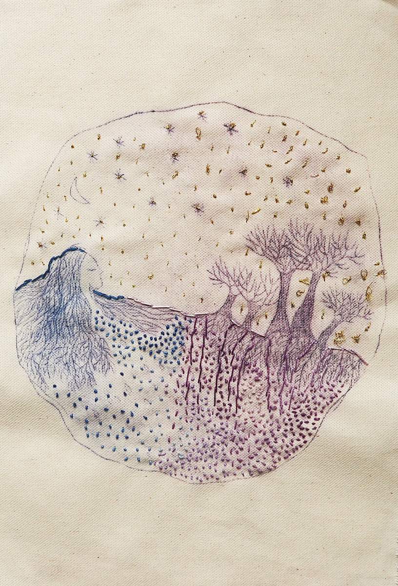 Valérie Belmokhtar, drypoint engraving and embroidery