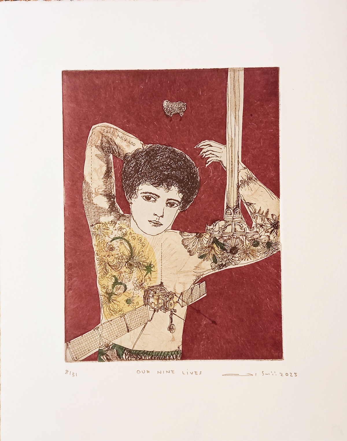 Atsuko Ishii, Our Nine Lives, 2025, colour etching, 24 x 30 cm, signed and limited edition to 31 prints