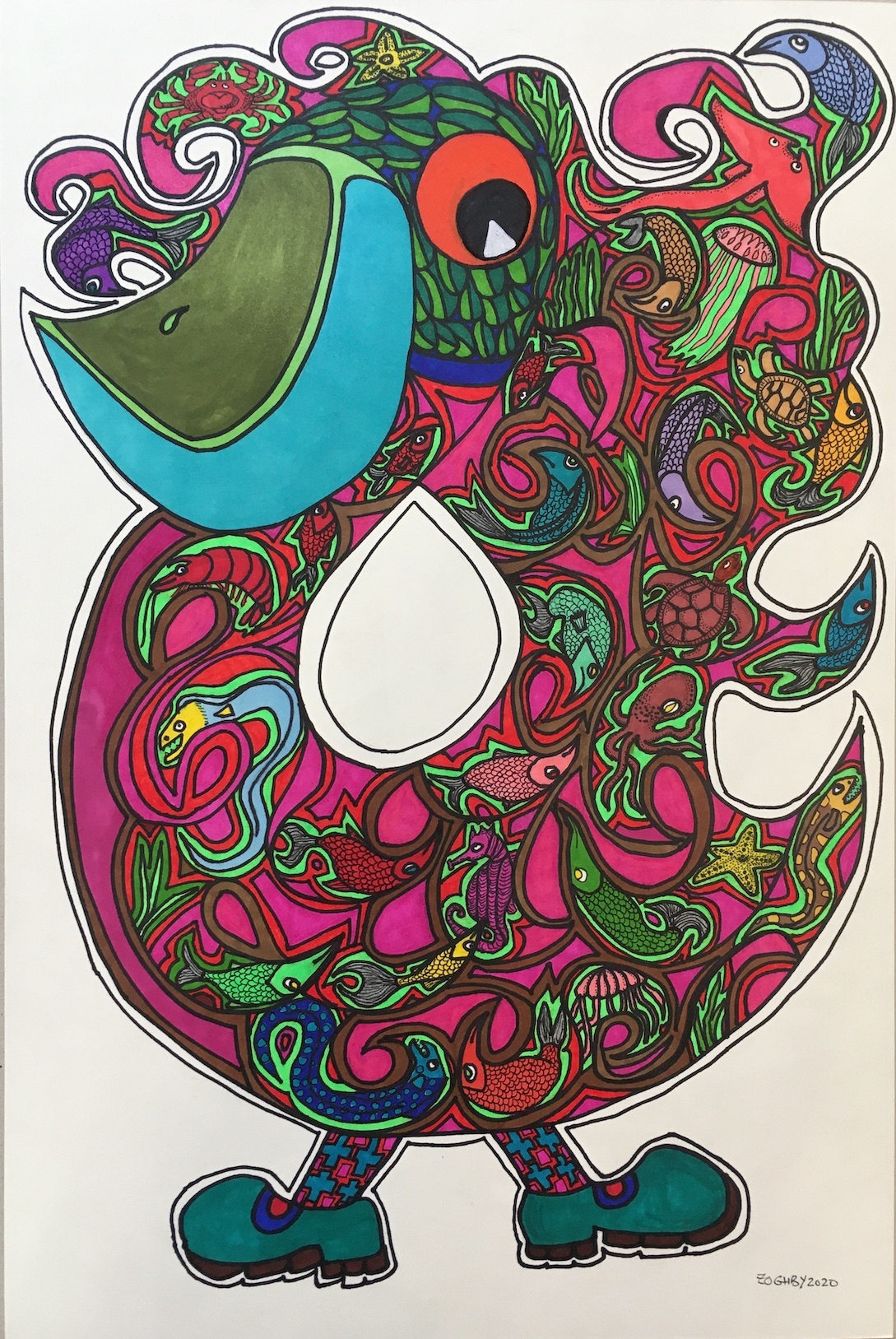 Samir M. Zhogby, The Ocean Floor in Hawaii, 2020, felt-tip pen drawing on paper, 45 x 31 cm, signed and dated lower right