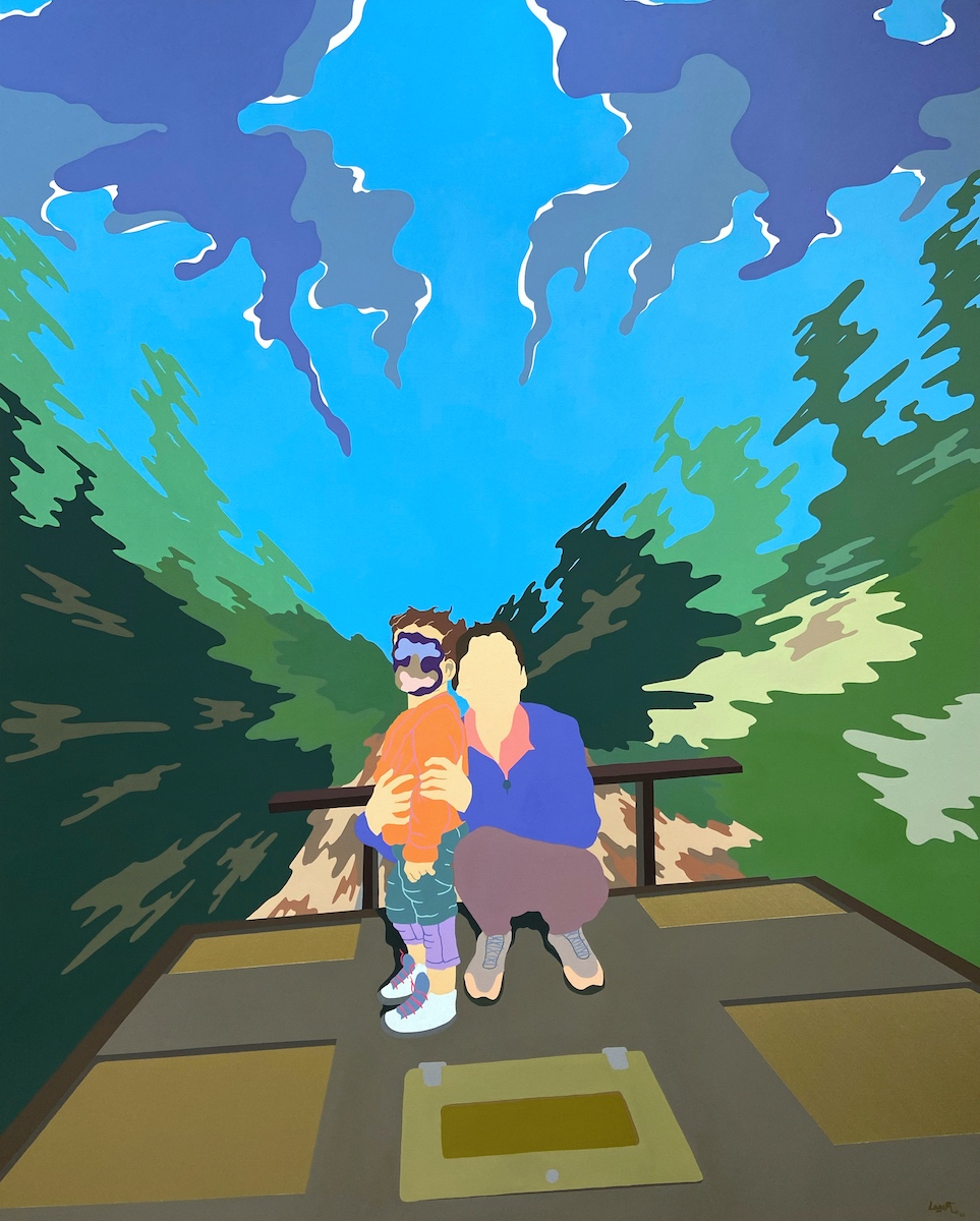 Thibault Laget-Ro’s palette and style are not without echoes of pop art and narrative figuration. But his choice is above all based on a reflection on colour and an intention as to the graphic, synthetic way of rendering figures, away from realism and symbolism. In figuration,” argues the painter, “we tend to make a colour and a feeling match to validate an intention, to increase the contrasts to influence the eye, as we do in marketing. For my part, I use colours that do not correspond to the subject’s expectations.
